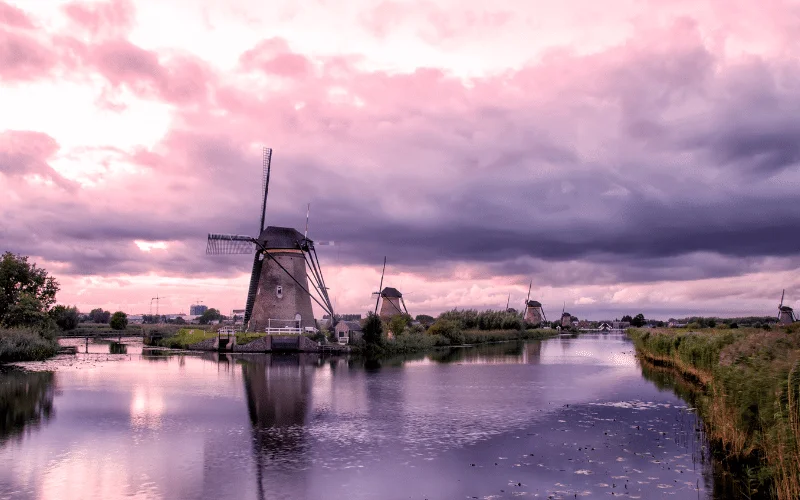 Hollanda’nın tarihî zenginliklerini yansıtan Kinderdijk, 19 rüzgar değirmeni ile benzersiz bir peyzaja ev sahipliği yapar. Bu değirmenler, su seviyesinin kontrol edilmesi ve bataklık alanların kurutulması amacıyla özenle inşa edilmiştir. Bu muazzam mühendislik eserleri, Hollanda’nın eşsiz su yönetimi geleneğini simgeler. Bataklık alanlardaki özenle döşenmiş yollar ve tarihi köprüler, ziyaretçilere etkileyici bir manzara sunar. Kinderdijk, rüzgar değirmenlerinin silueti ve çevresindeki doğal güzellikleriyle, adeta bir açık hava müzesi gibidir. Rüzgar değirmenleri, sadece teknolojik birer yapı değil, aynı zamanda Hollanda’nın su mühendisliği mirasının birer sembolüdür. Hollanda’nın su ile olan mücadelesini ve bu eşsiz bölgenin nasıl şekillendiğini keşfetmek isteyenler için ideal bir destinasyondur.