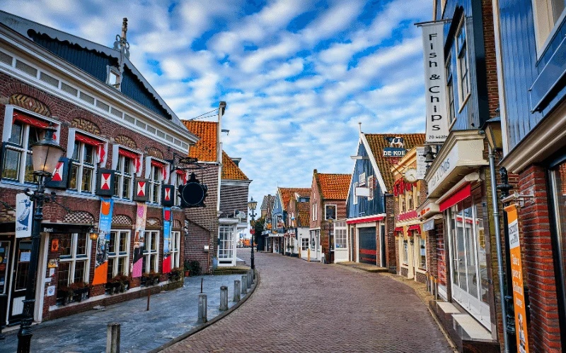 Hollanda’nın gizemli tarihine ve deniz kenarındaki çekiciliğine ev sahipliği yapan Volendam, Amsterdam’ın kuzeyinde, İjssel Gölü’nün kıyısında büyüleyici bir köy ve liman kentidir. Renkli evleri, tipik Hollanda mimarisi ve geleneksel kültürüyle dikkat çeker. Volendam, rüzgar değirmenleri, ahşap ayak köprüleri ve göletleriyle çevrili, adeta bir masal köyünün atmosferini yansıtır. Liman bölgesi, balıkçı tekneleriyle dolup taşarken, deniz mahsulleri restoranları ve hediyelik eşya dükkanlarıyla çevrili tarihi bir dokuya sahiptir. Tarihi kıyı şeridi, geleneksel kıyafetleri giymiş yerel halk ve ziyaretçiler arasında renkli bir atmosfer oluşturur. Volendam’da, taze deniz mahsulleriyle dolu lezzetli bir deneyim yaşayabilir, tarihî müzeleri ziyaret edebilir ve göl manzaralı yürüyüş parkurlarında huzurlu bir zaman geçirebilirsiniz.